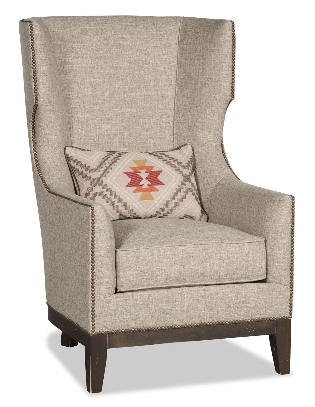 Retro style wingback chair covered in a textured grey fabric with nailhead trim. Crazy good deal sofa. Luxury furniture at a super good price.