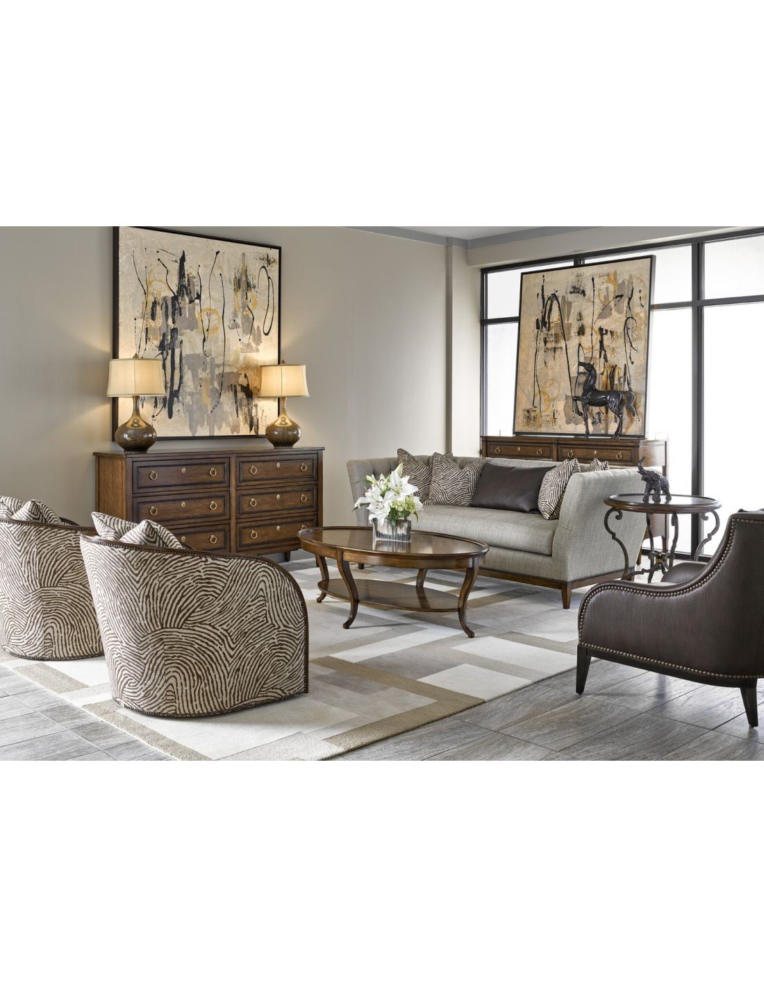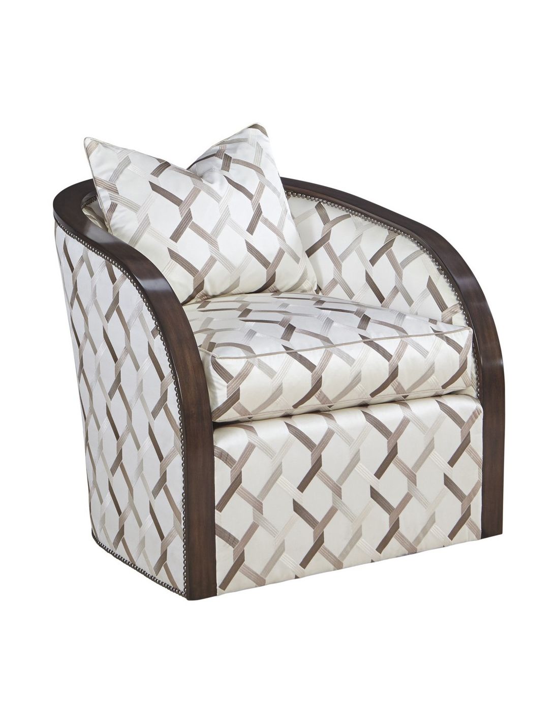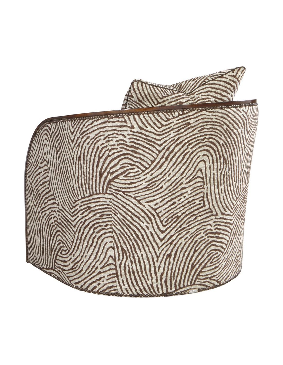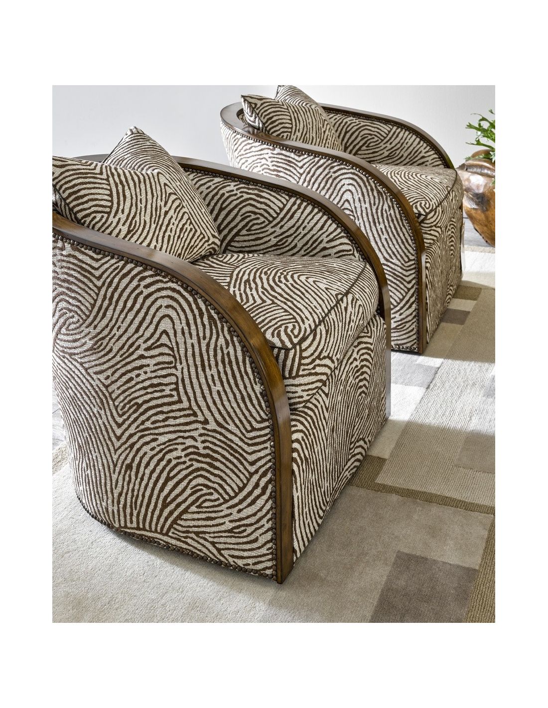 Luxurious Rays of Amber Armchair complete with a zanzibar nailhead frame trim and a waterfall skirt.